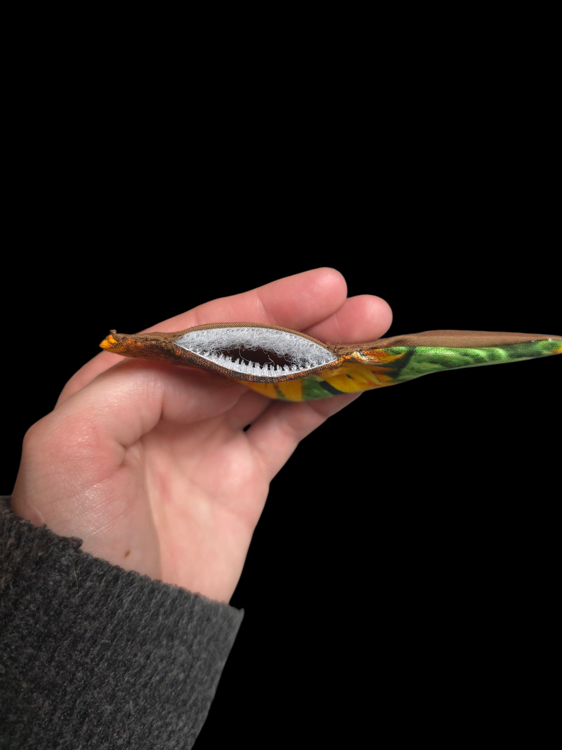 Once you place your order, send me an email with which filling you would like, whether you would like a string added to connect to a rod (rod not included), and whether you would like the toy to have velcro to replace the filling as needed.